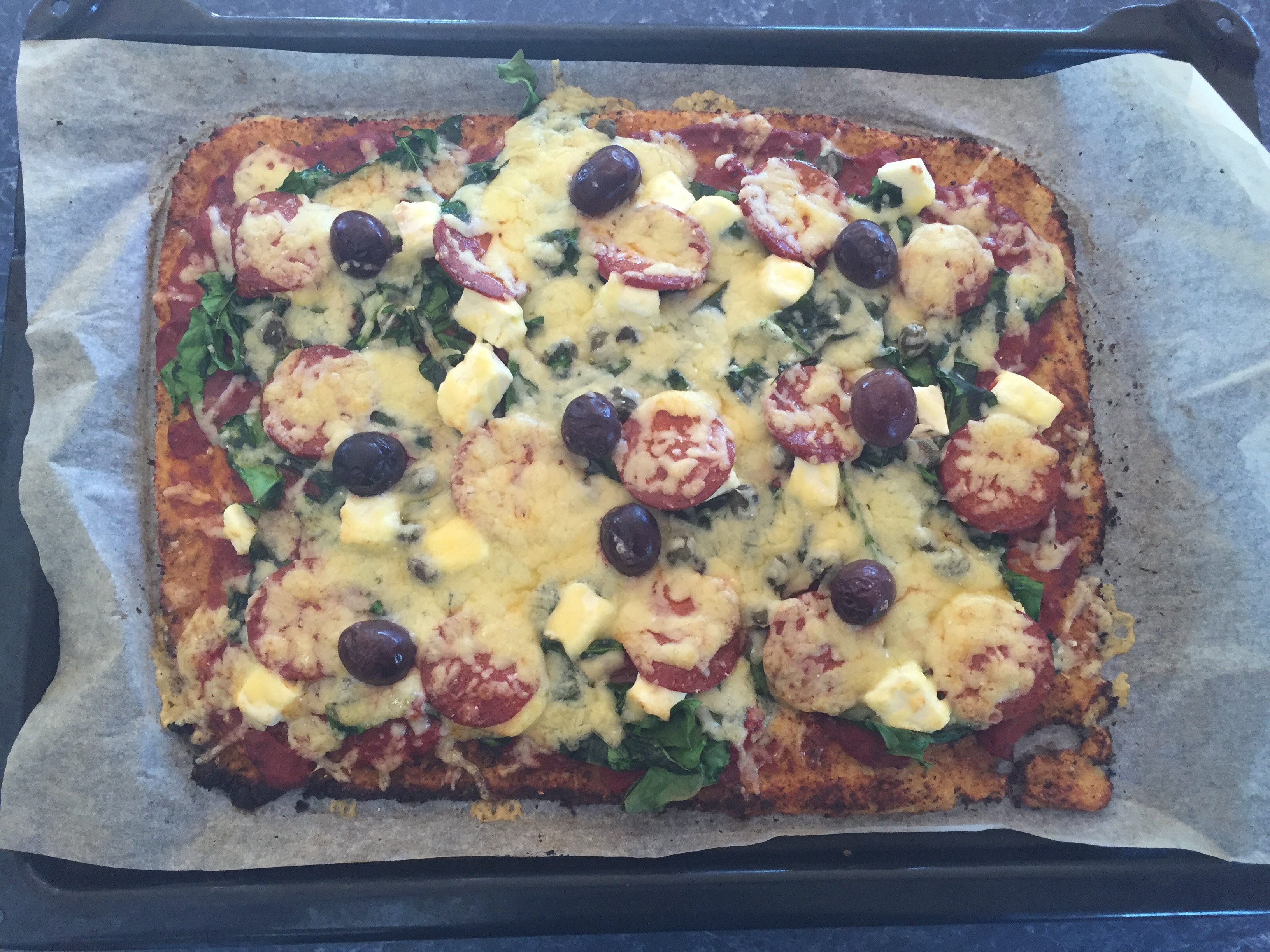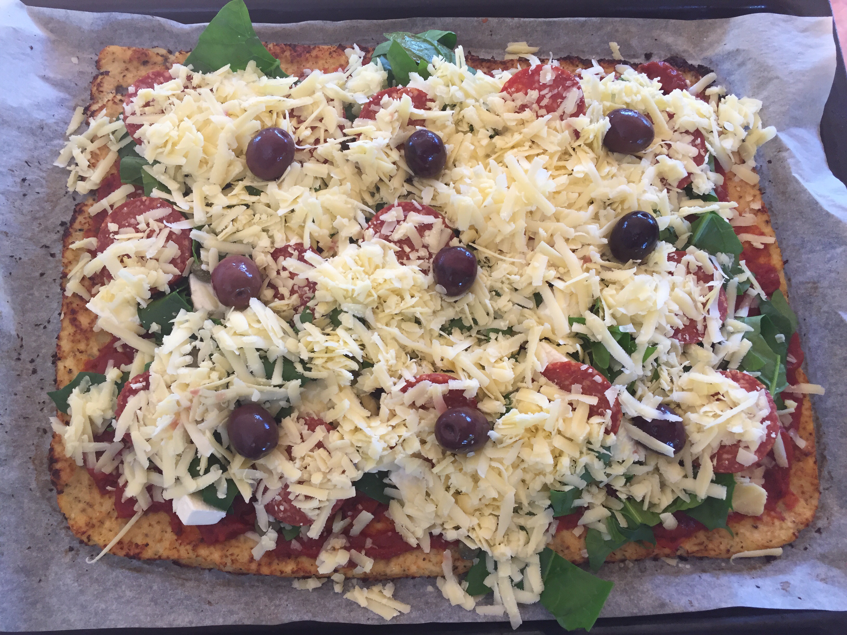 This yummy pizza has no grains so is low in carbs, perfect for a low carb, paleo or ketogenic type lifestyle. The base is made from cauliflower and is very easy to make.